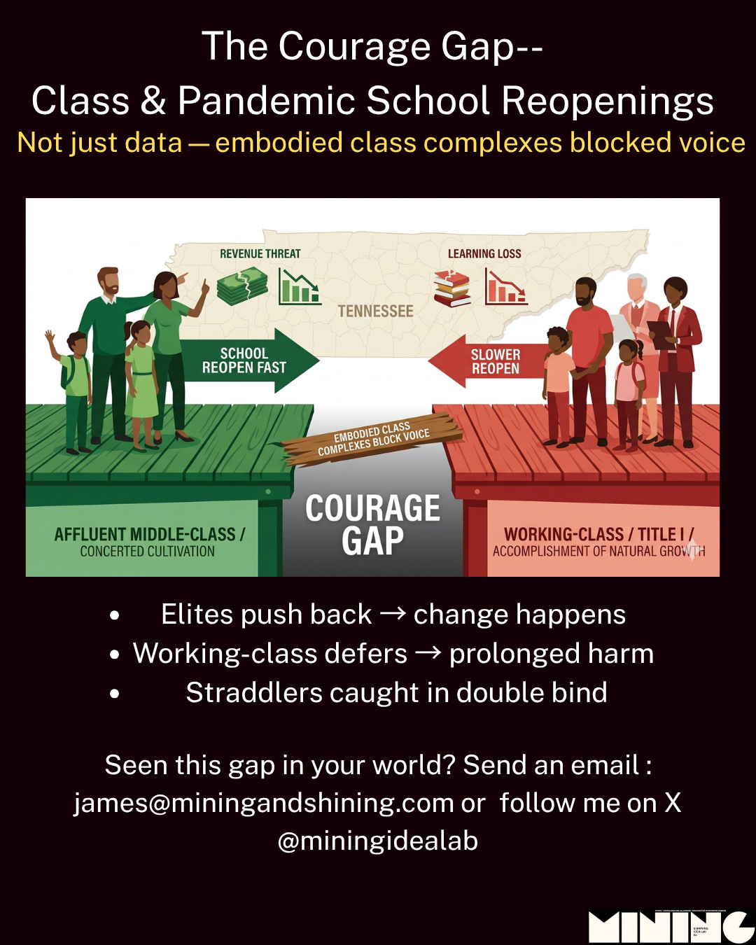 During my self-inflicted sabbatical and Jungian Training, I did a Courage Gap talk about social class and school openings during the pandemic. In TN, I noticed that schools outside of the cities were opening more quickly-- so I got curious. I've always been a fan of Annette Lareau's Unequal Childhoods and